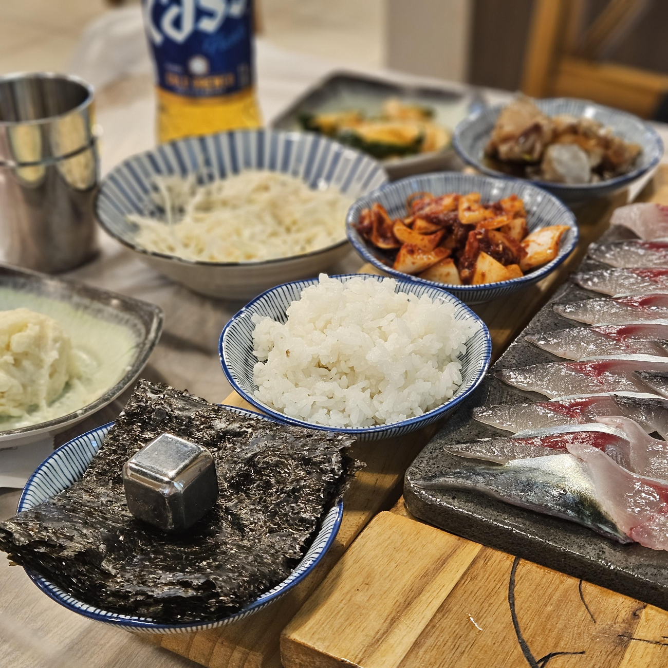 김에 고등어회랑 김치랑 넣어서 먹으면 진짜 감칠맛 작살나게 맛있어요.