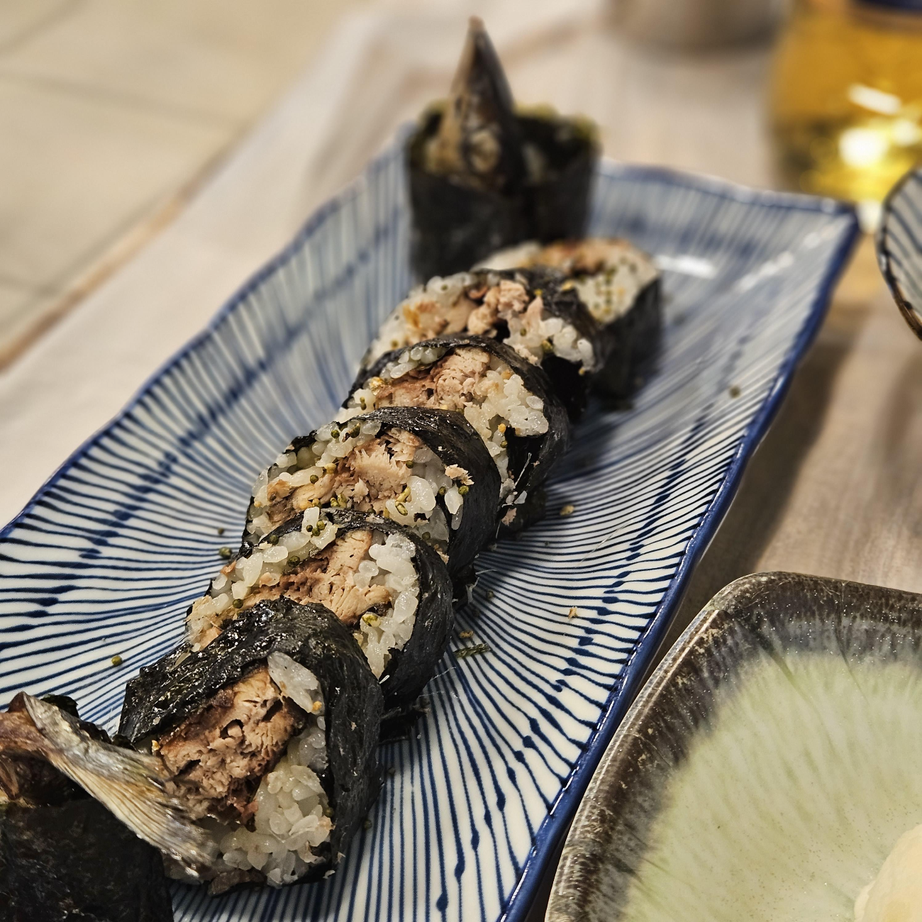 꽁치 김밥이랑 우럭 튀김이 같이 나옵니다.