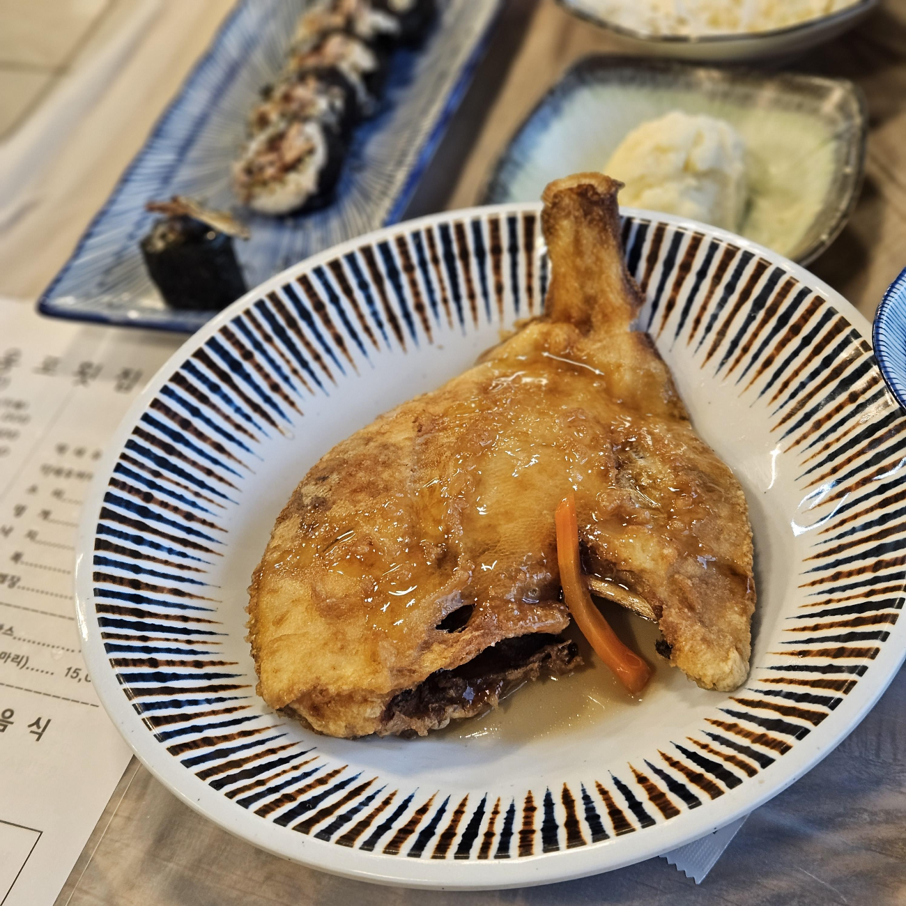우럭튀김이 원래 기본인데 상황에 따라서 다른 걸로 나온다고 하더라고요.