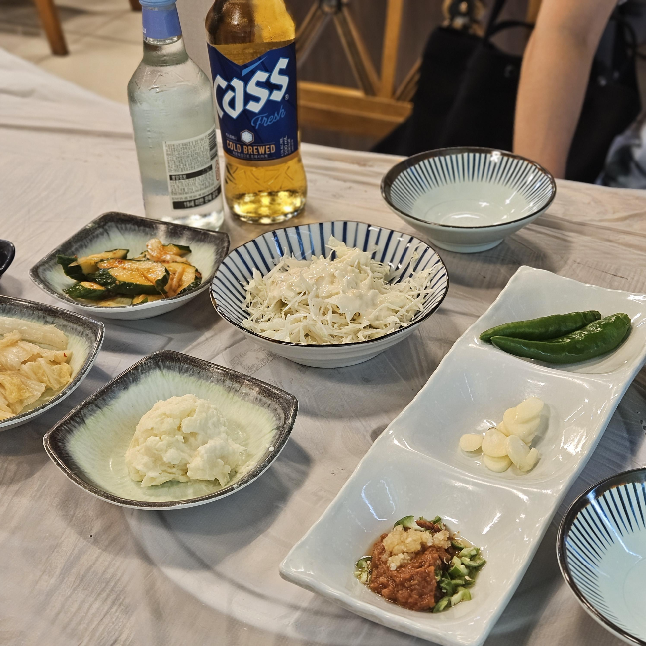 샐러드랑 씻은 김치? 랑 오이무침 나와요 반찬 전부 맛있었어요!