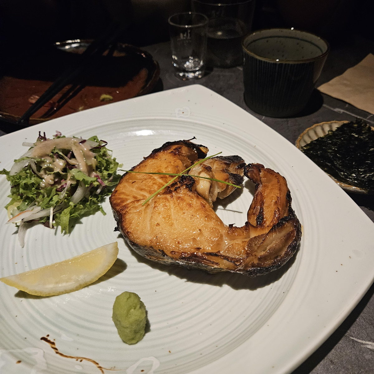 고추냉이랑 같이 먹으면 되고 구이에 약간 간이 되어있어서 다른 소스 없이도 맛있습니다.