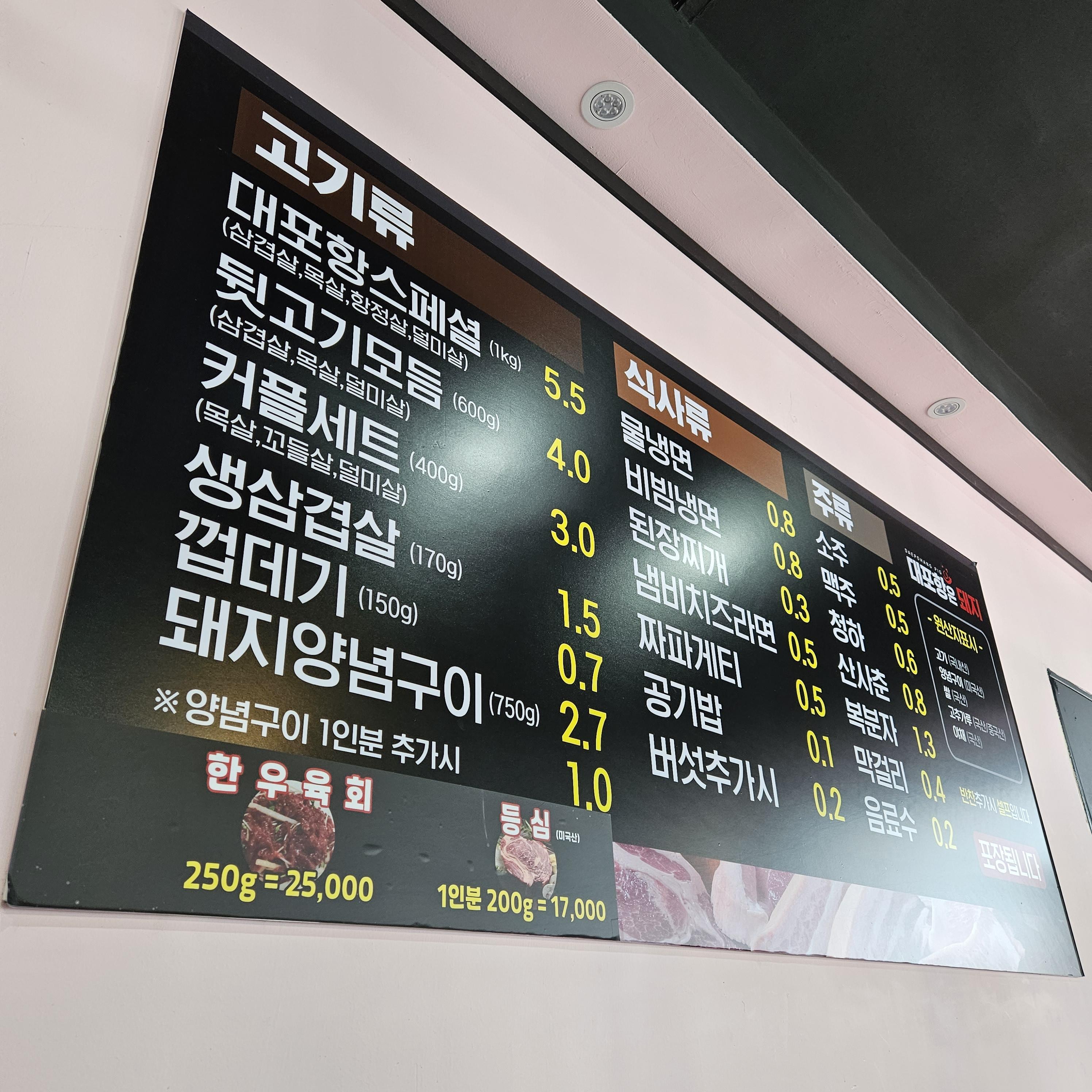 - 대포항 스페셜 (삼겹살, 목살, 항정살, 덜미살) : 55,000