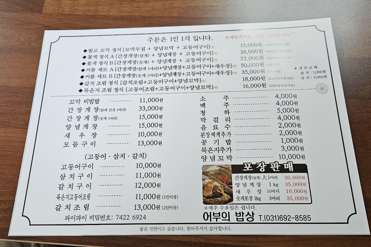 - 어부의 밥상 메뉴