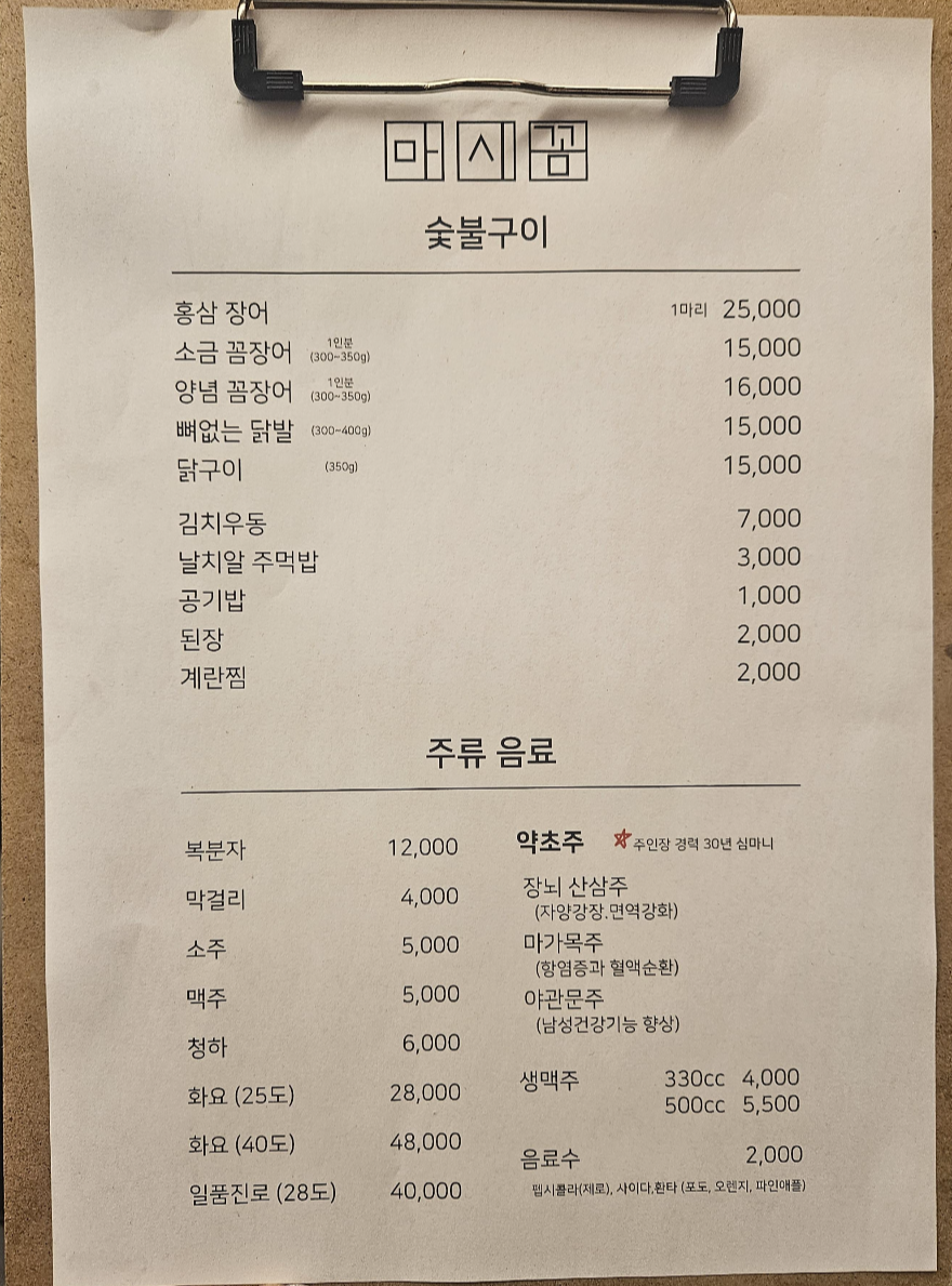 - 마시꼼 메뉴