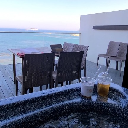 처음 나가면 스파욕조가 있고 한번 더 나가게 되면 테라스에 개인 바베큐를 이용할 수 있도록 되어 있습니다.
