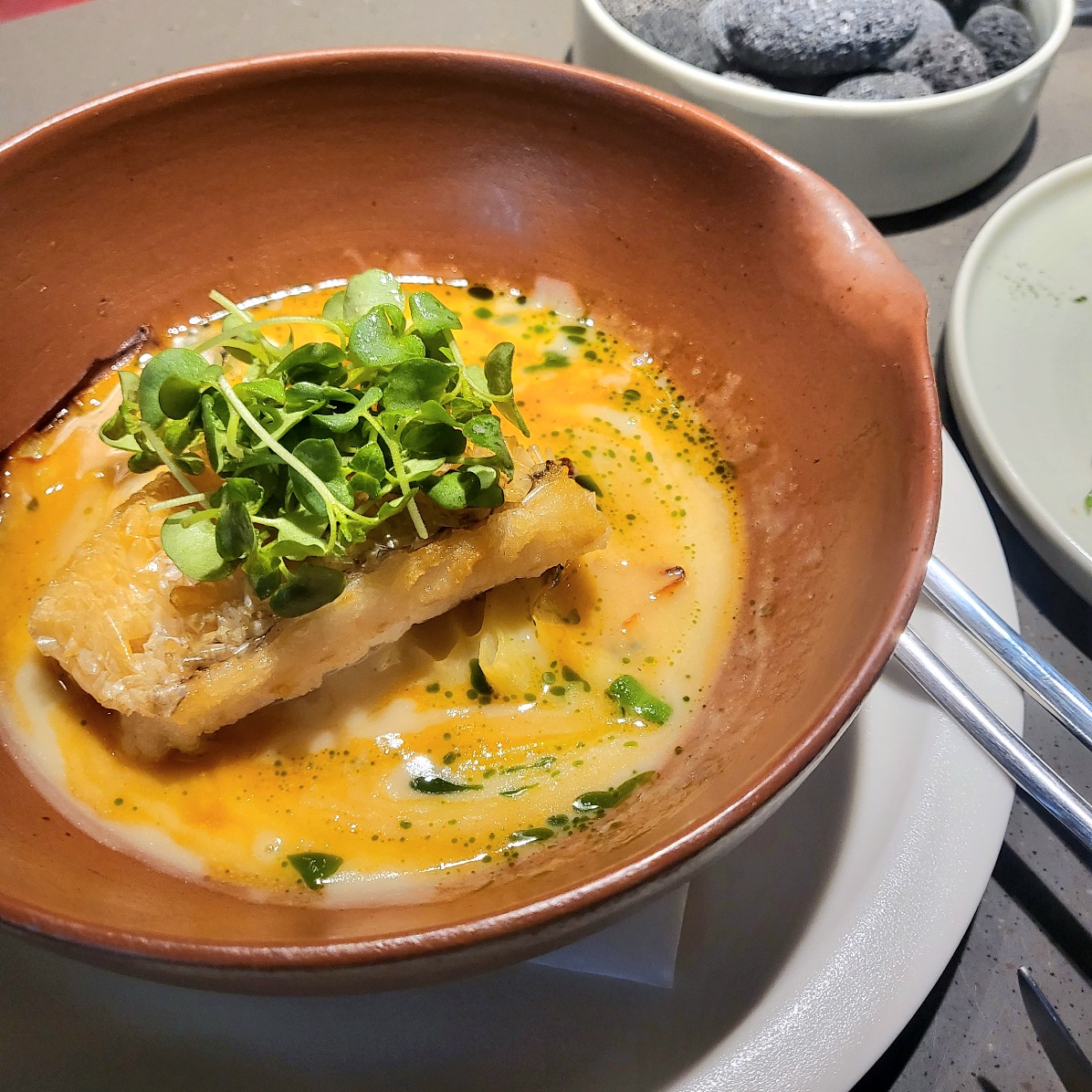옥돔 비늘이 엄청 결이 잘 살려져서 튀겨져 있습니다. 바스러지는 식감이 부드러운 옥돔살과 참 잘 어울렸던 것 같아요.