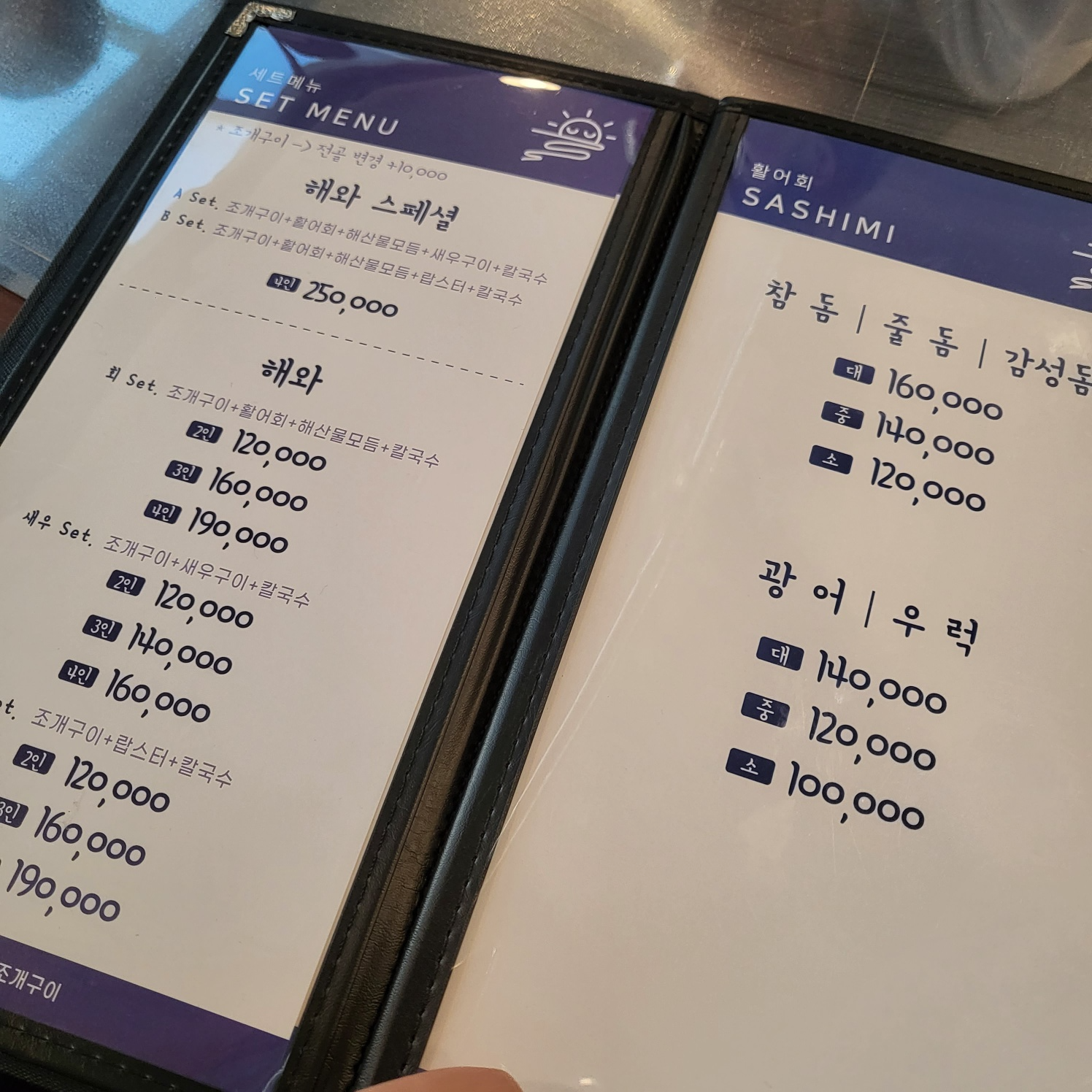 메뉴는 이미지도 같이 첨부해드릴게요 ! 제가 먹은 회 세트랑 조개구이만 우선 적어드립니다.