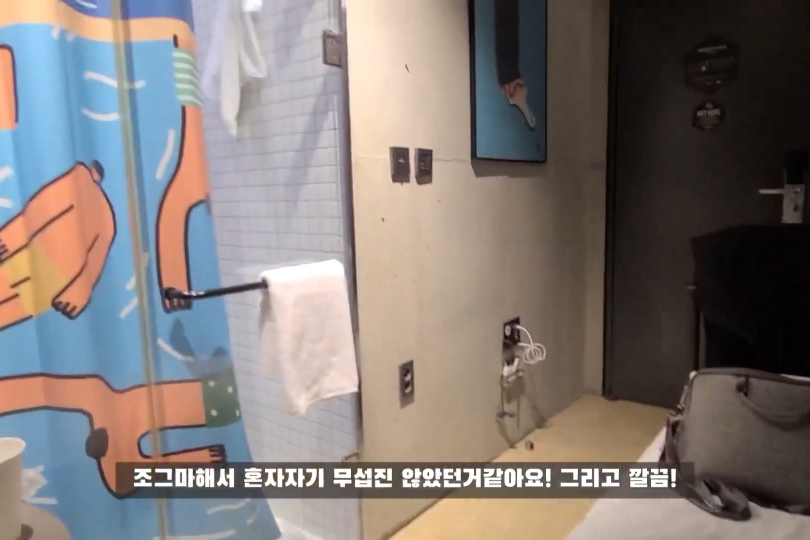 투명하게 된 화장실에 욕실 커튼정도가 다인데 이건 후기 보면 호불호가 갈리기는 하는데 저는 싫다고 생각하진 않았습니다.