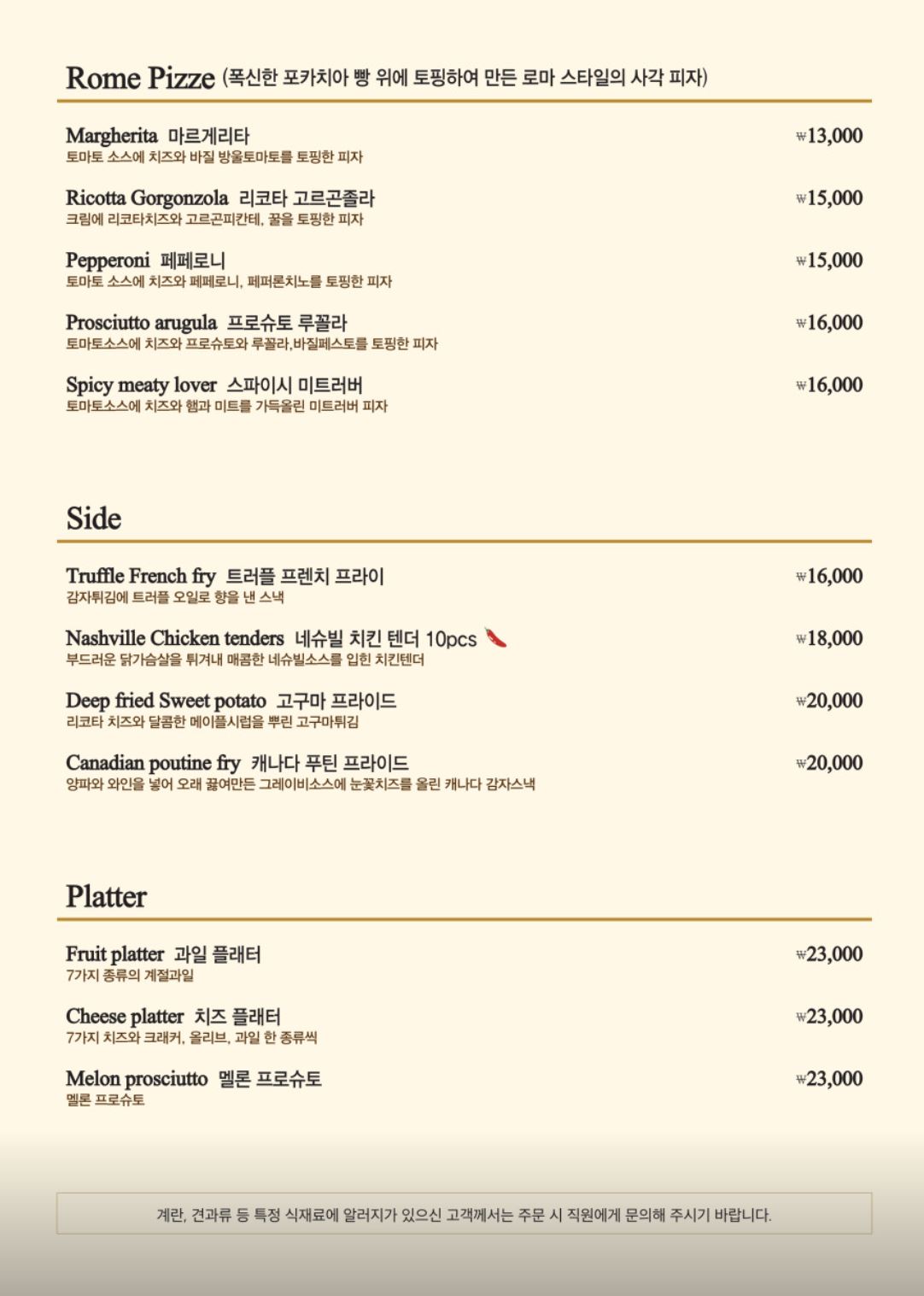 - 29펍 메뉴