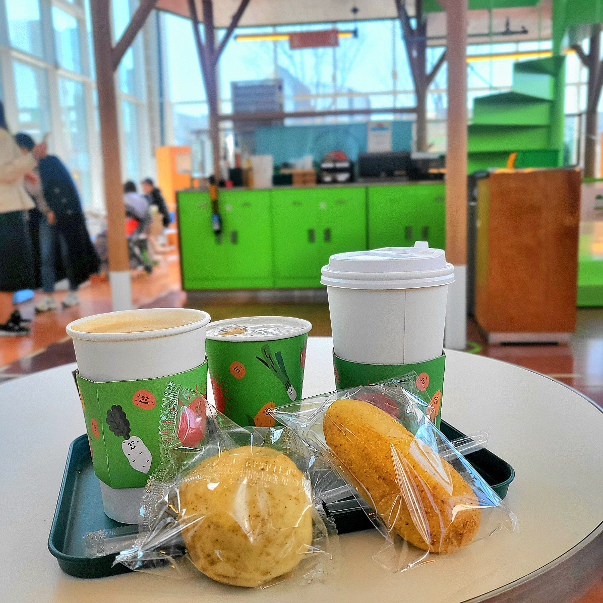 서리태라떼(5,500) / 카페라떼(5,000) / 밀크샷라떼(5,500) / 초당옥수수빵(3,500) / 감자빵(3,300)