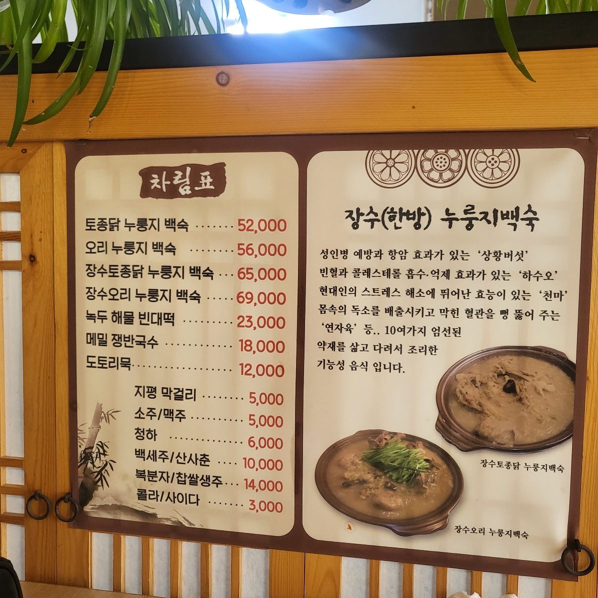 저는 토종닭 누룽지 백숙(52,000)을 먹었습니다.
