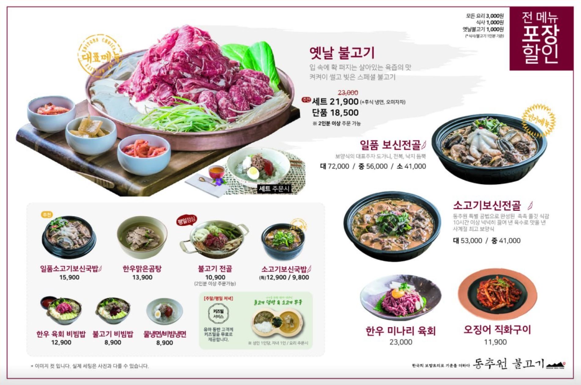 동추원불고기 메뉴 (출처 | 네이버지도 - 동추원불고기)