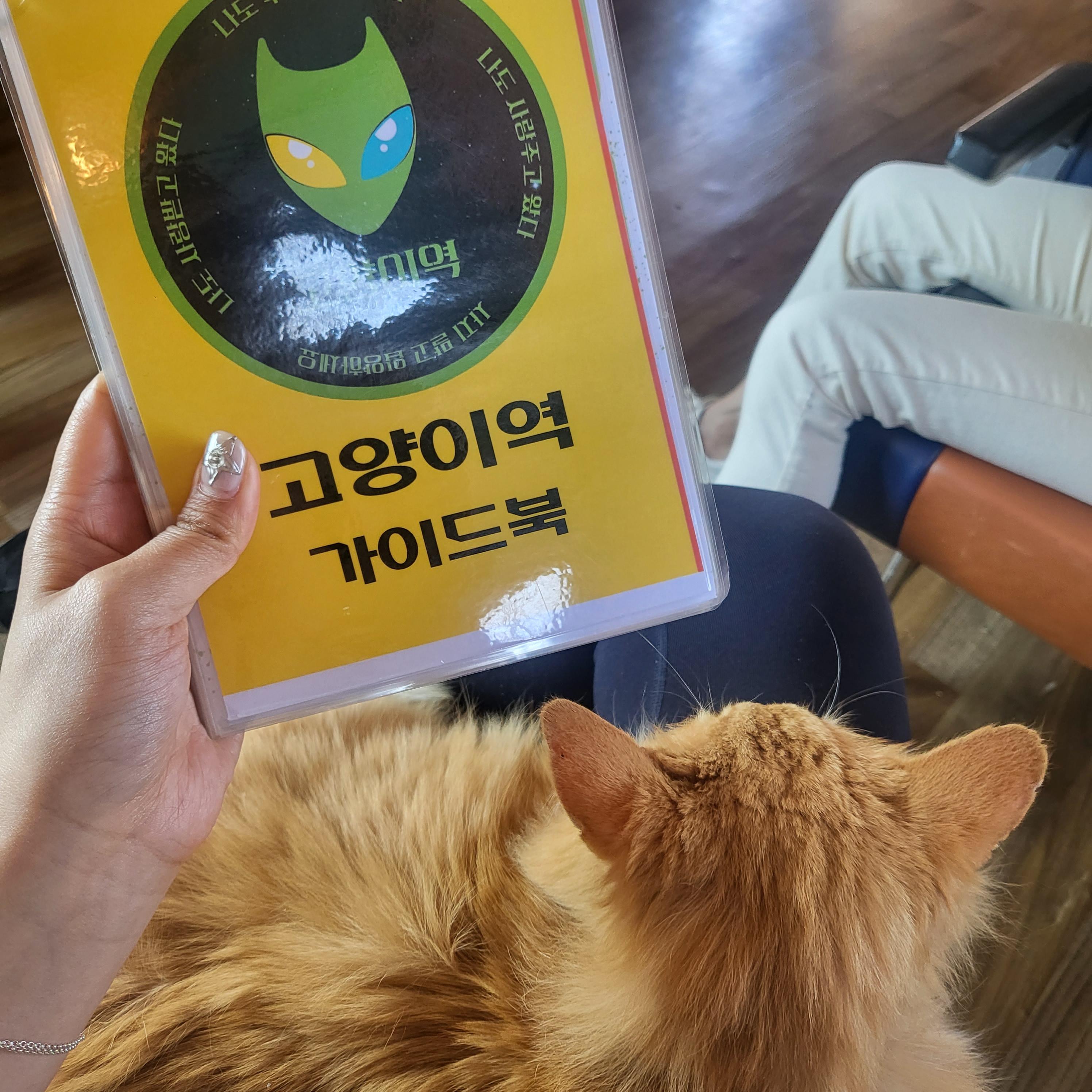 고양이역 가이드 북도 주셔서 보면 냥이들 이름이랑 설명이 쓰여 있어요.