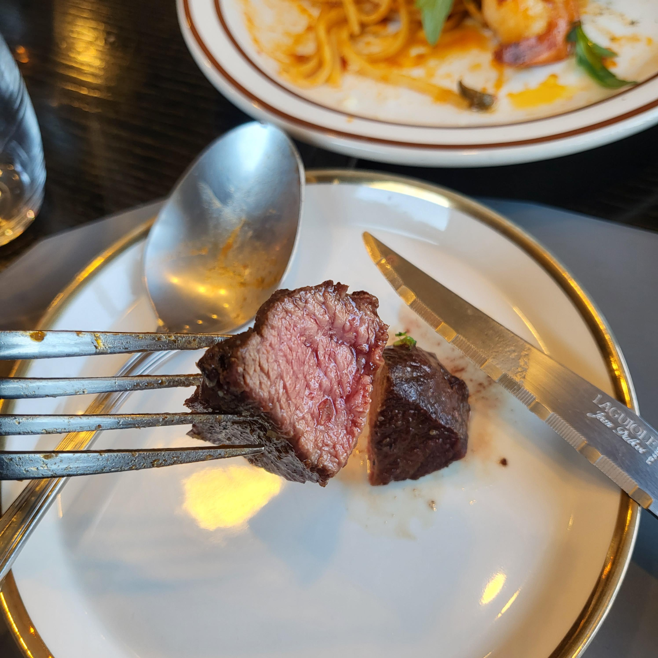 그릇도 뜨겁게 나와서 열로 더 익기 때문에 미디엄 레어로 드시면 좋을 듯해요!