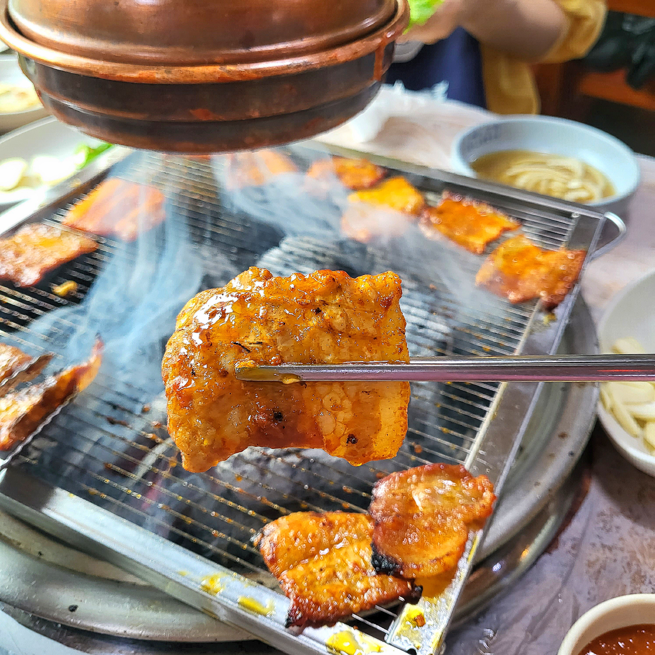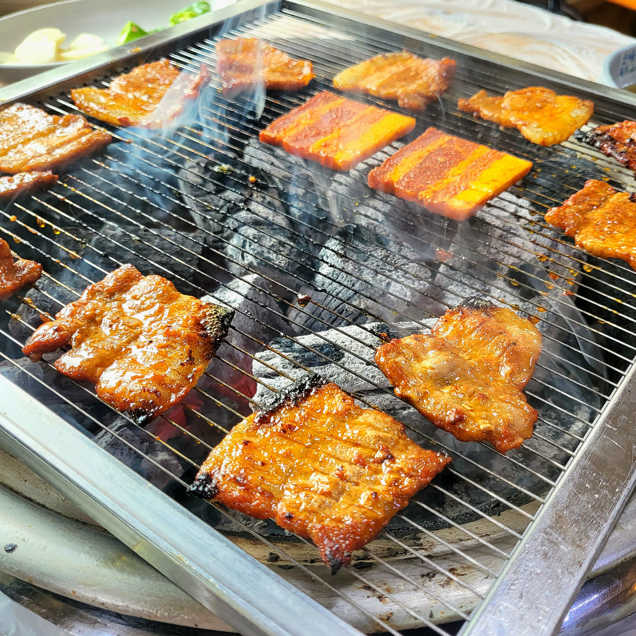 고기가 얇아서 금방 익어가지고 타기 전에 금방금방 구워서 먹을 수 있었습니다.