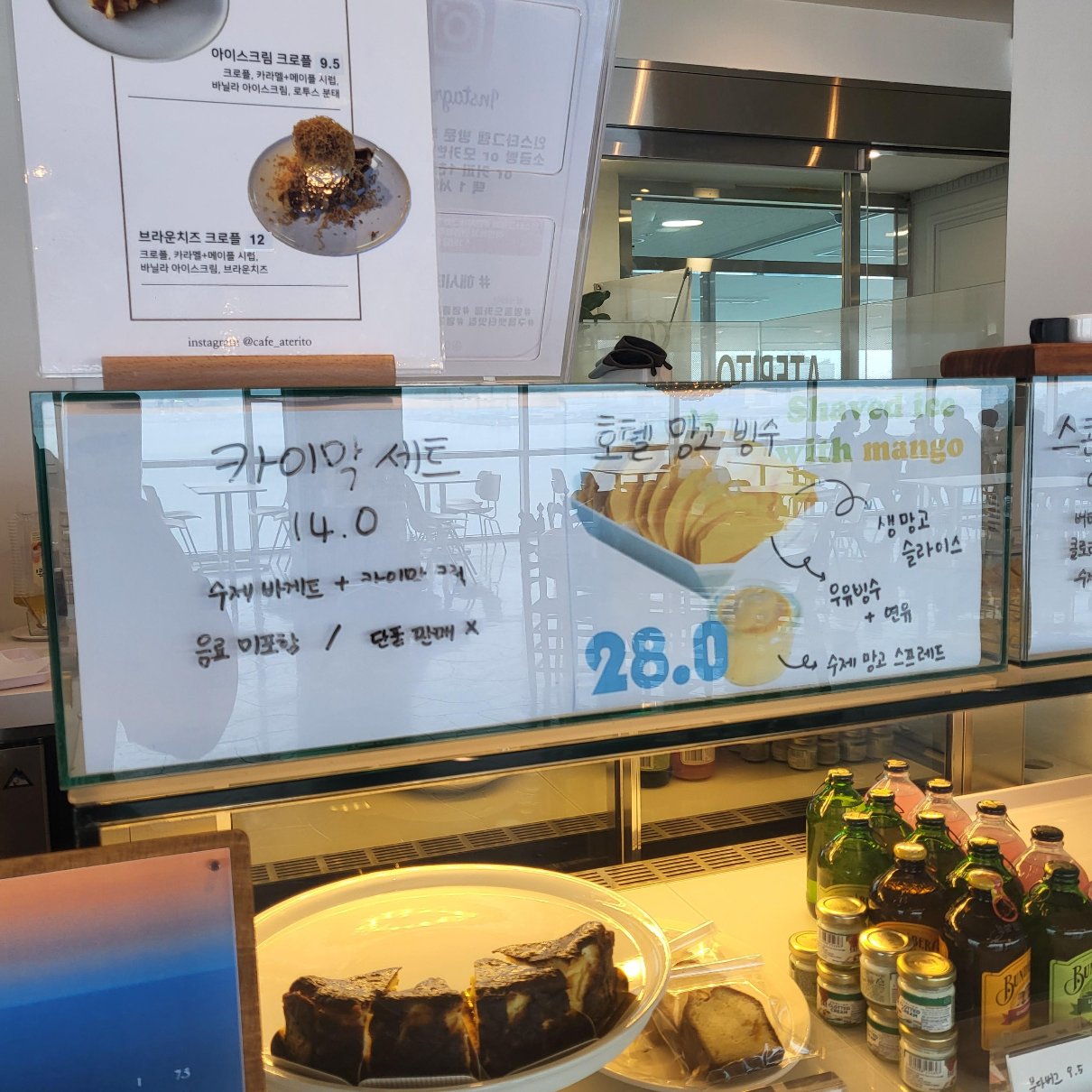 영종도에 위치한 오션뷰를 보며 카이막과 망고빙수를 먹을 수 있는 카페 - 아테리토