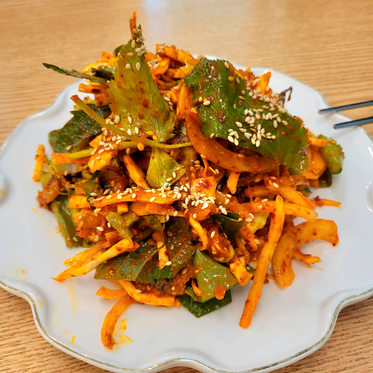 무침에 깻잎이랑 참나물이 너무 향긋하니 좋았어요.