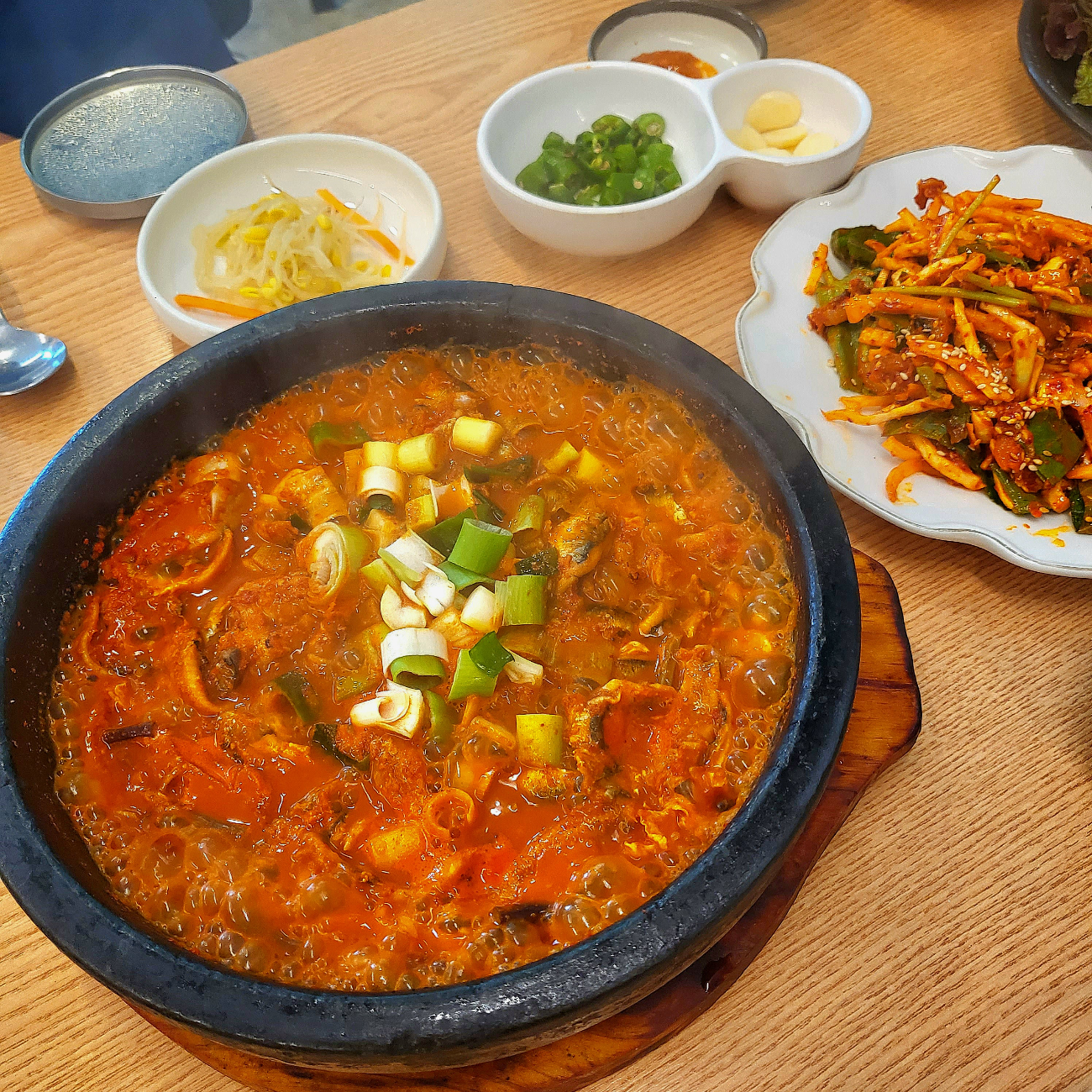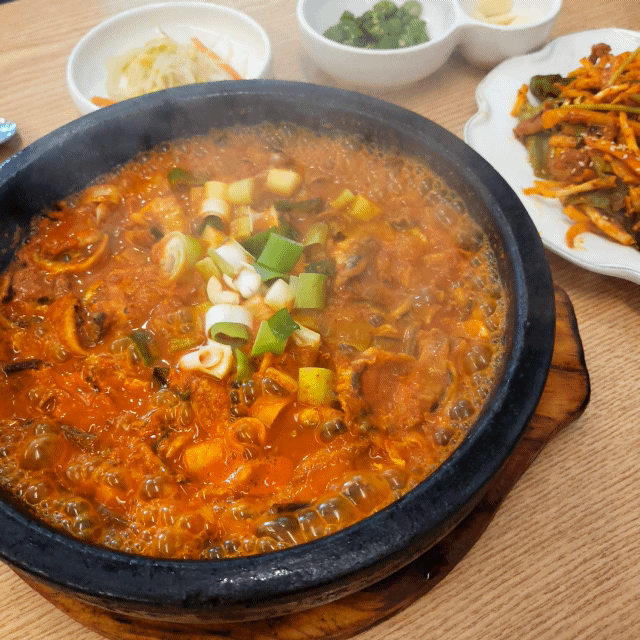 이렇게 이미지처럼 보글보글 맛있게 돌판에 나옵니다.