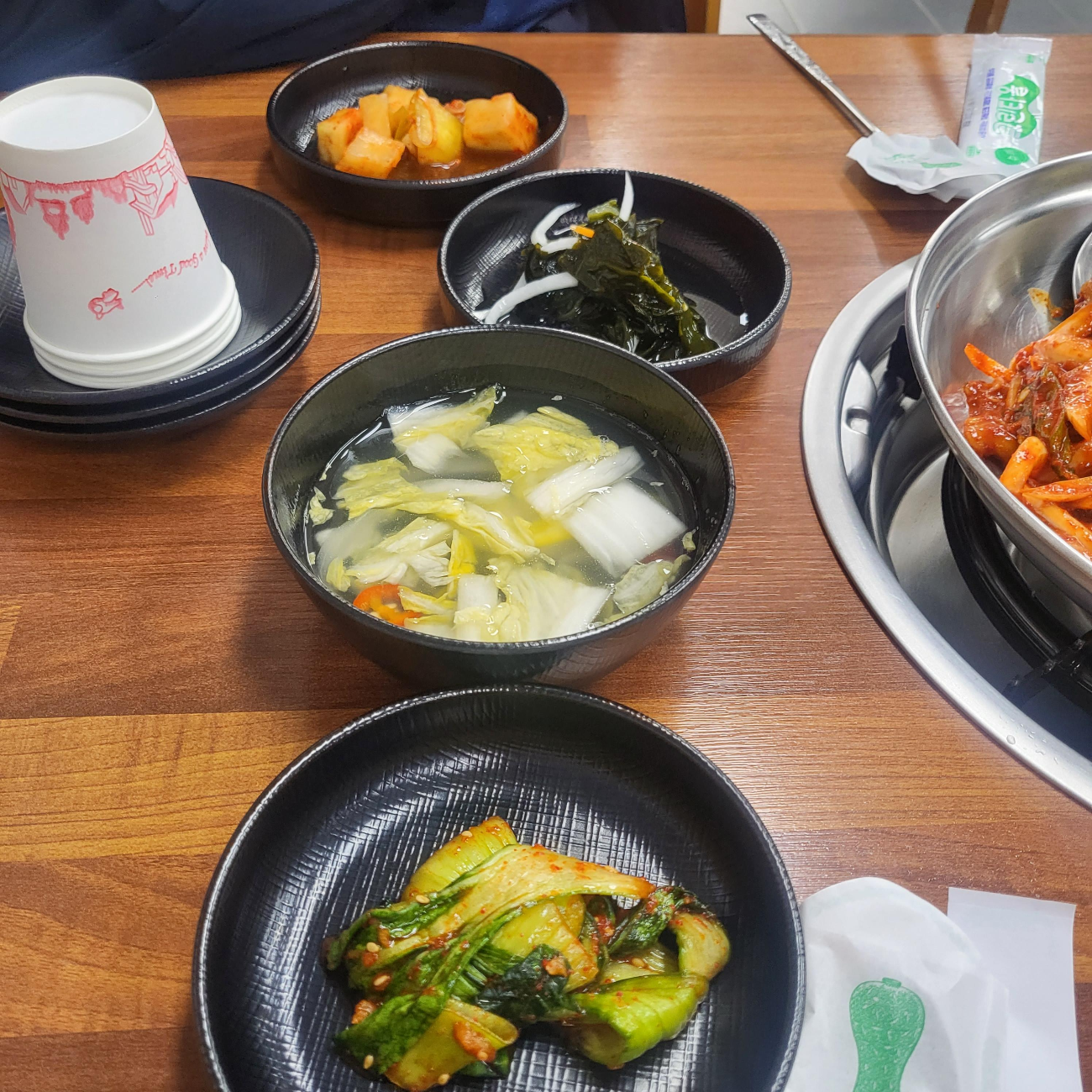 김치는 굉장히 푹 익어서 약간 신맛입니다.