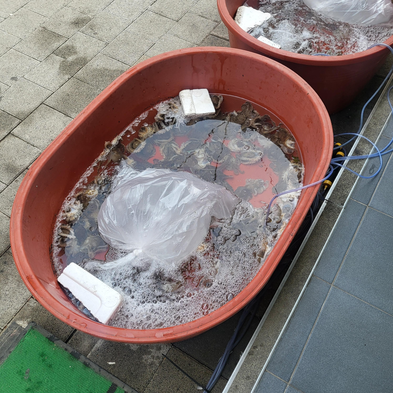 대야에 쭈꾸미 수조가 있어서 생 쭈꾸미 확인할 수 있습니다.