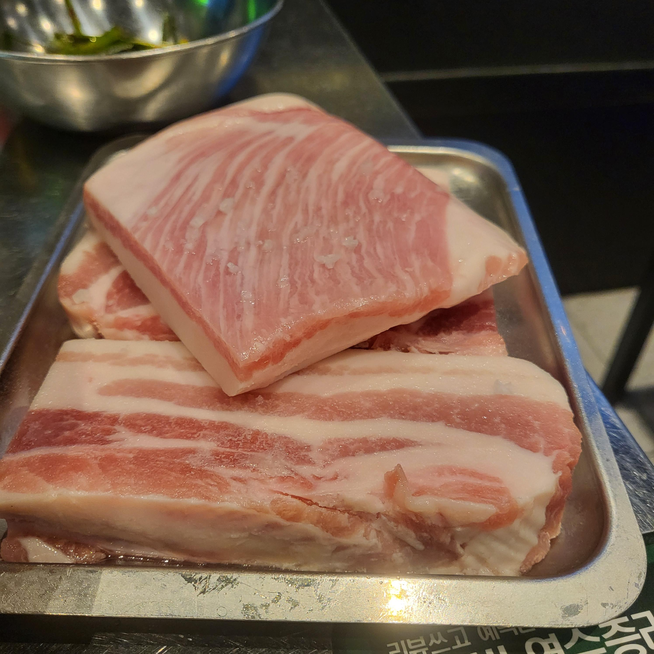 삼겹살도 통삼겹이라서 겉을 잘 익혀서 드시면 안은 촉촉하고 맛있습니다.