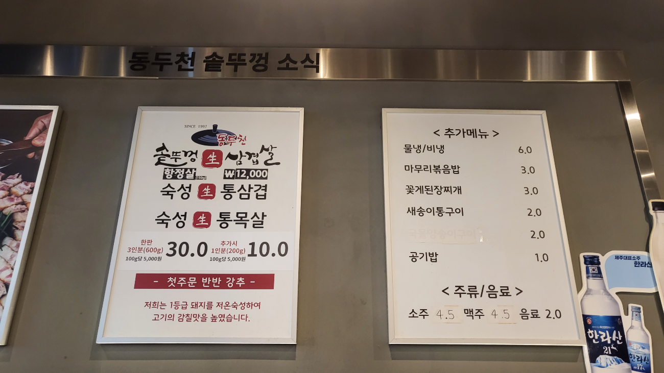 - 동두천 솥뚜껑 삼겹살 메뉴
