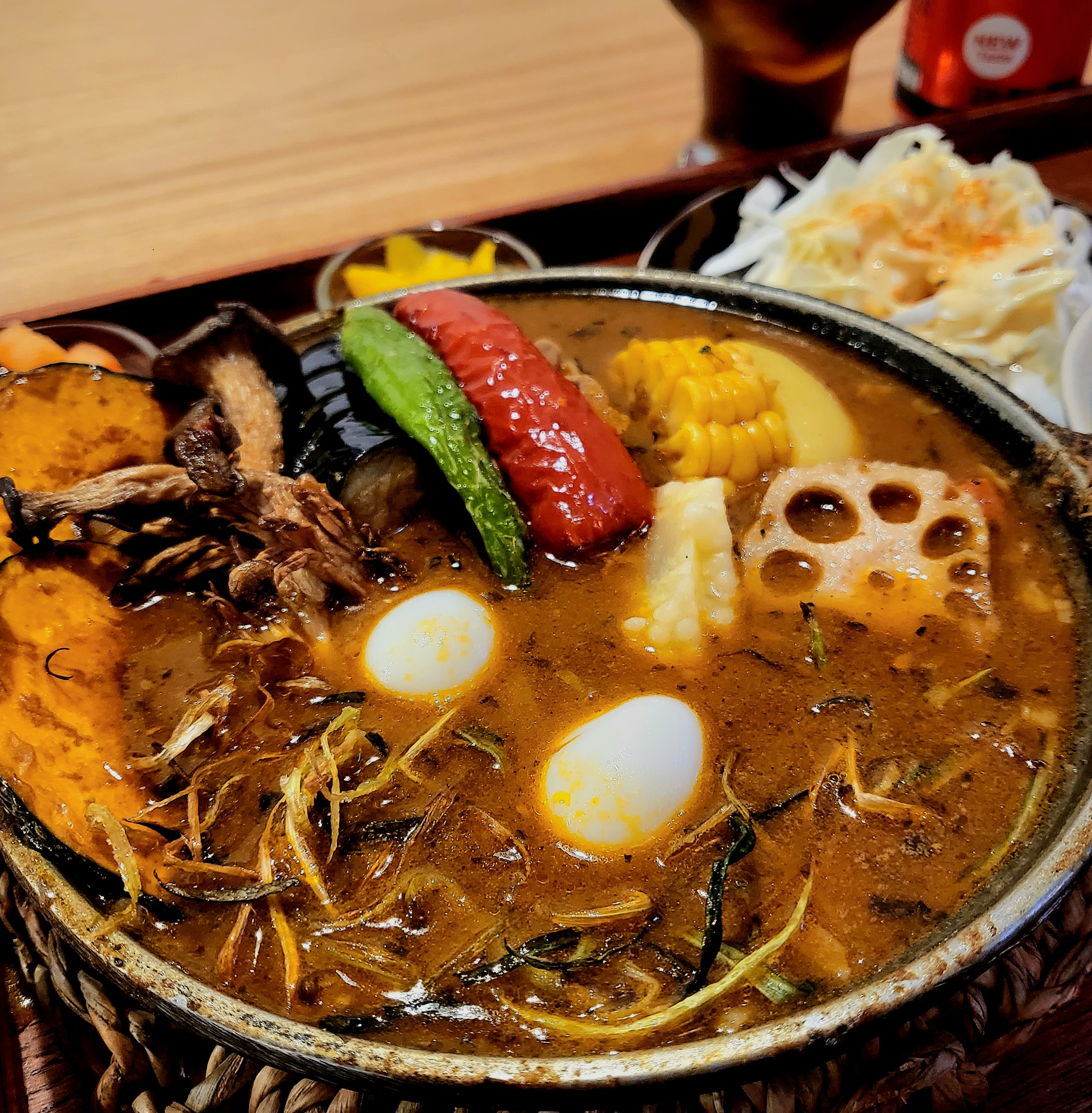 스프커리에는 다양한 야채가 들어있어서 좋았고 전부 굽거나 튀겨진 종류였습니다.