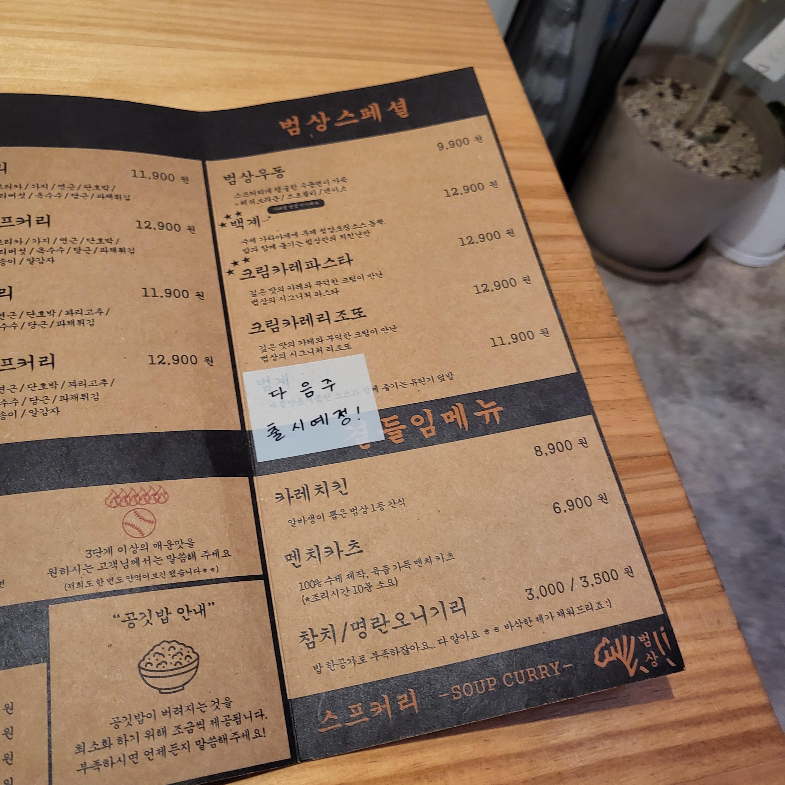 우삼겹 커리 또는 야채 커리 둘중에 하나만 추천드려요