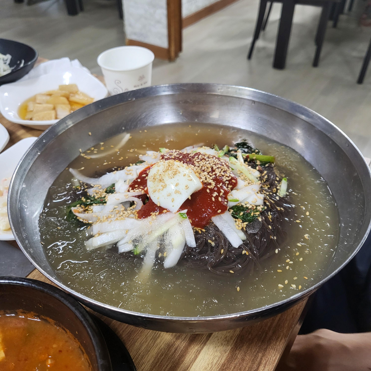살얼음도 띄워져 있어서 시원하게 잘 먹었고 양념이 있는 물냉면이라서 매콤하니 삼겹살이랑 맛있게 먹었습니다.