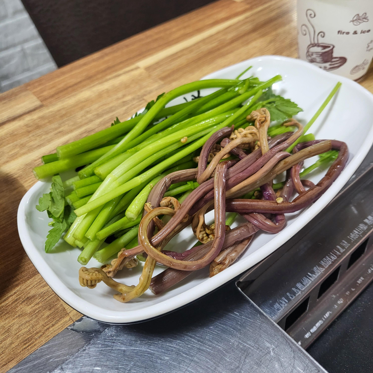 미나리랑 고사리도 같이 나옵니다 같이 구운 다음에 드시면 꿀맛입니다.