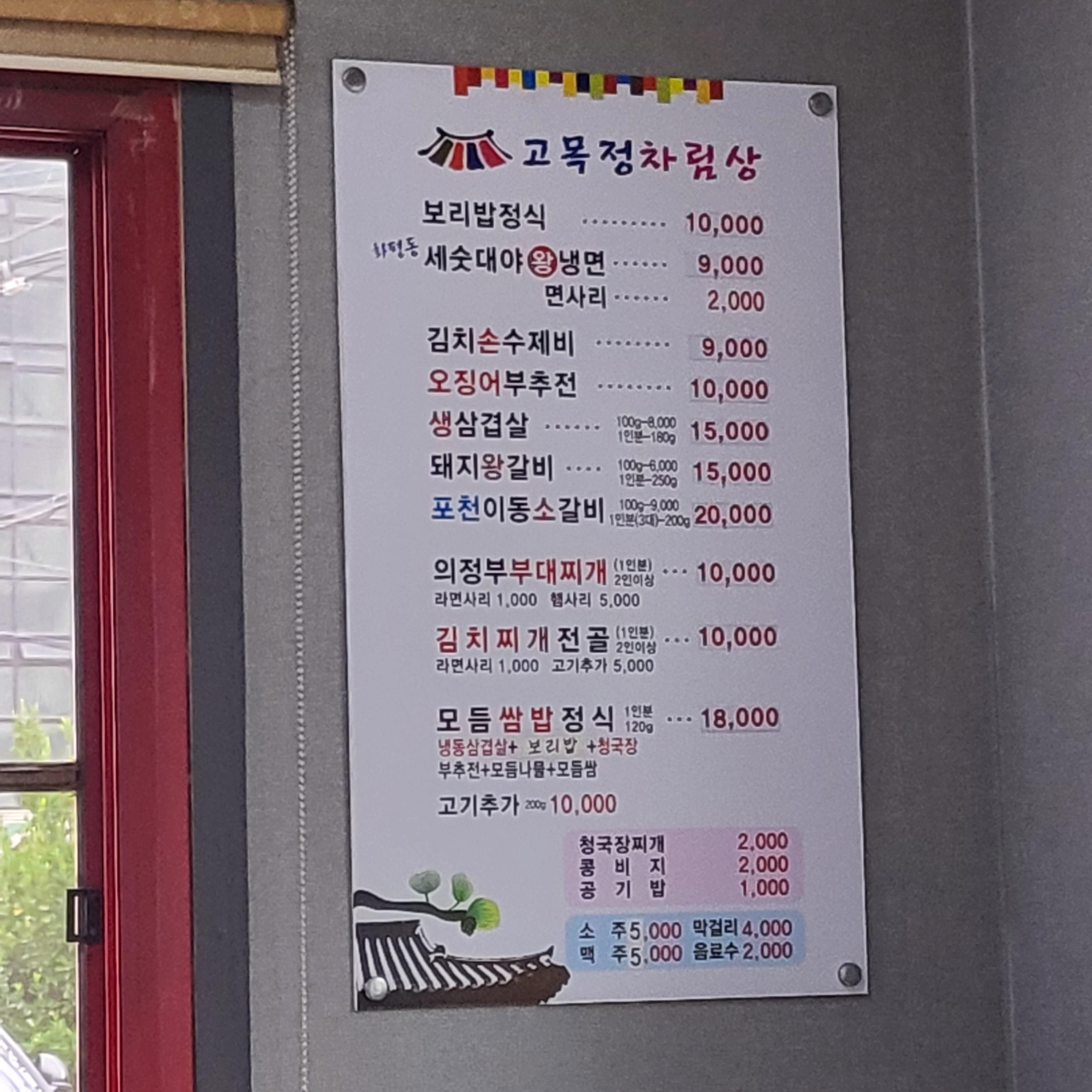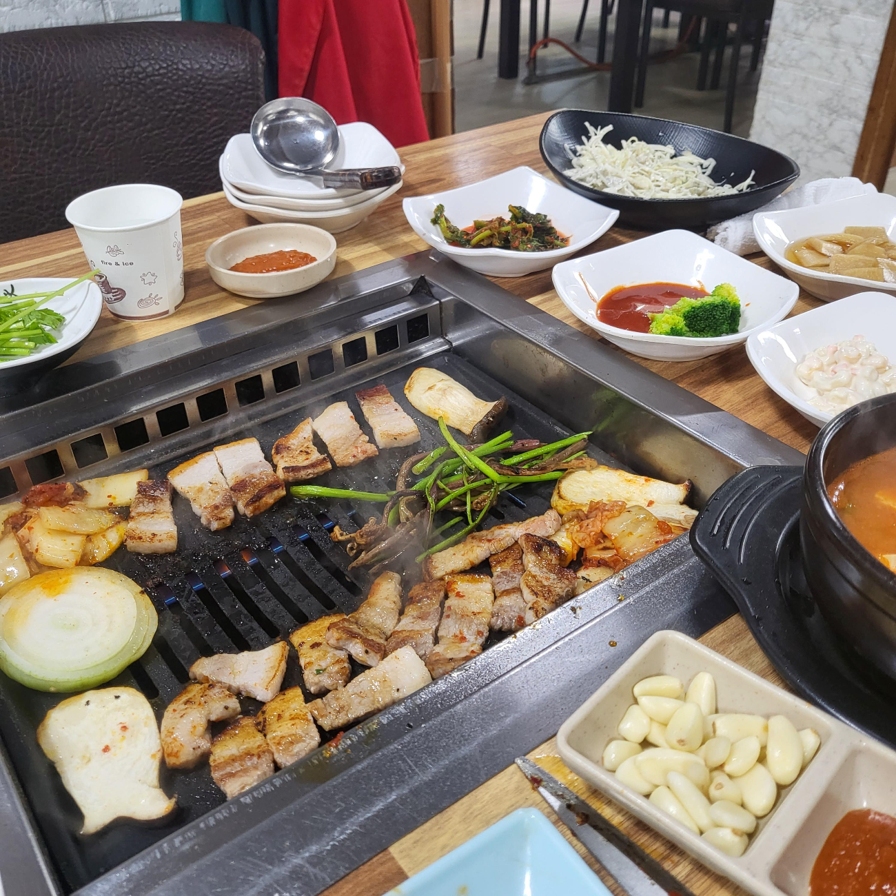 - 쌈밥정식 : 18,000 (냉동삼겹살 + 보리밥 + 청국장)