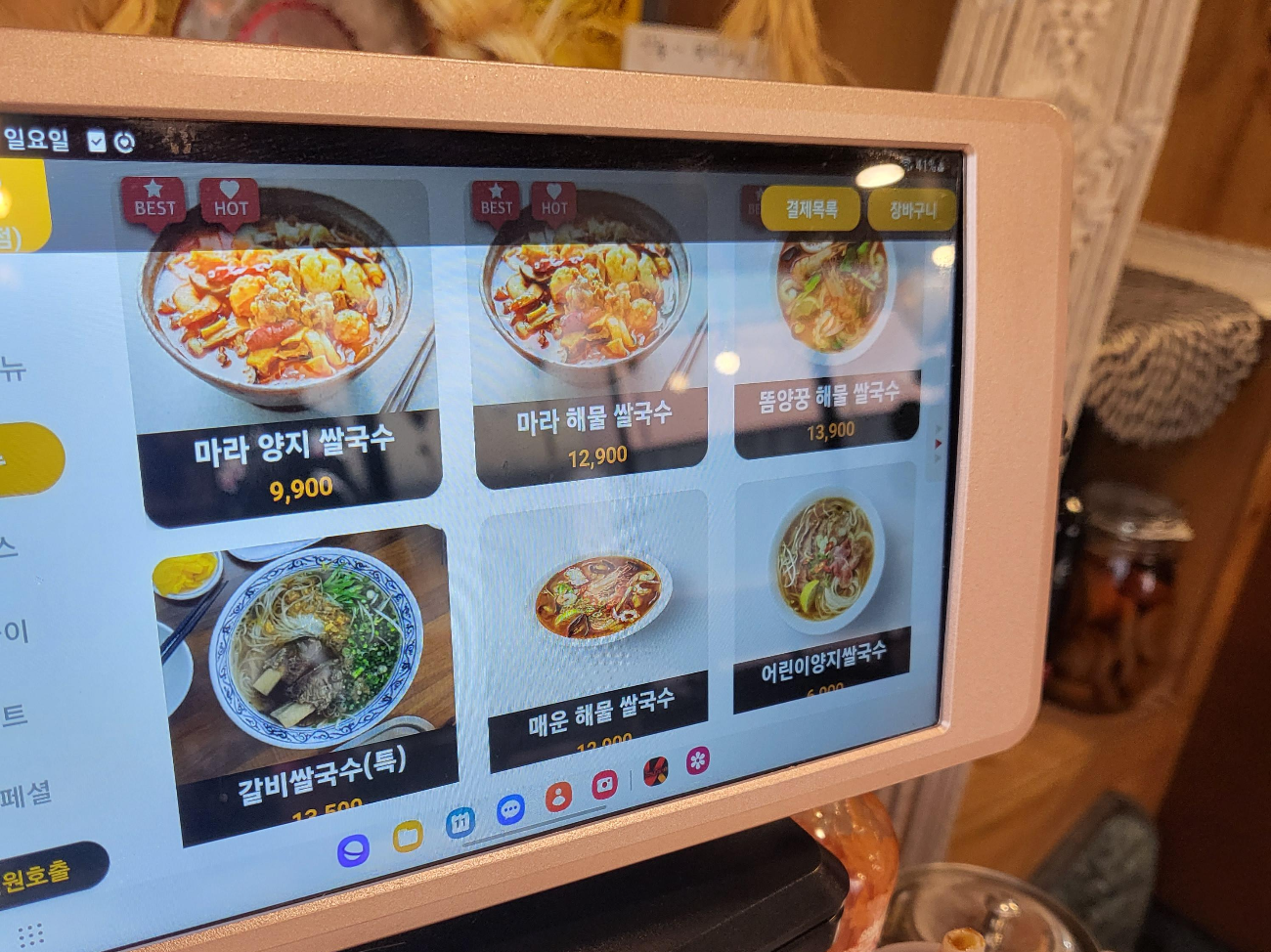 메뉴는 바로 기계 밑에 카드기가 달려있어서 메뉴선택 후에 바로바로 주문하는 시스템입니다.