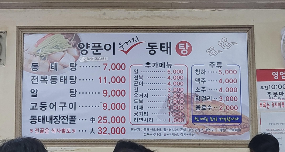 학익동에 위치한 오래된 동태탕 가게입니다.