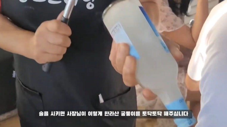 소주 시킬 때 직원분께서 소주 슬러시 만들어주시려고 미니 망치로